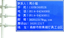 地址:揚州市北郊郭集鎮(zhèn)燈具工業(yè)區(qū)  聯(lián)系人:周小姐  手機:13056368526    18921926488 蘇ICP備15031957號 蘇公網(wǎng)安備32108402000913號